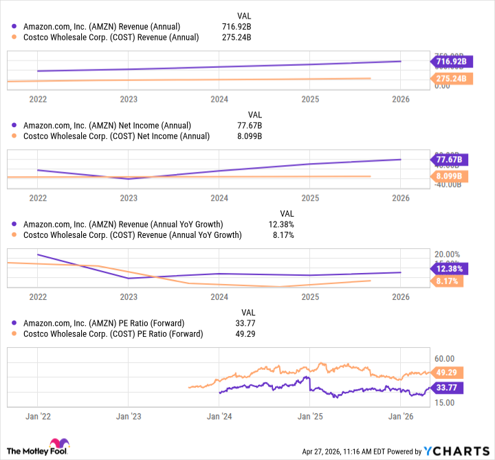 Костко, пожалуй, более устойчив к потрясениям. Его клиенты, как правило, не избалованы роскошью и продолжат покупать товары первой необходимости, даже если мир рухнет. Амазон же, с его облачными вычислениями и рекламой, более уязвим к экономическим спадам. Если компании сократят расходы на рекламу, а люди откажутся от стриминговых сервисов, то Амазон пострадает. И, кстати, Амазон не выплачивает дивиденды. А Костко – выплачивает. Так что, если вы ищете надежный источник дохода, то Костко – лучший выбор. Но помните: в жизни нет идеальных решений. И каждый выбор имеет свою цену. И, кстати, я слышал, что скоро начнется конец света. Так что, может быть, вам вообще не стоит инвестировать в акции. Лучше купите себе бункер и запаситесь консервами.