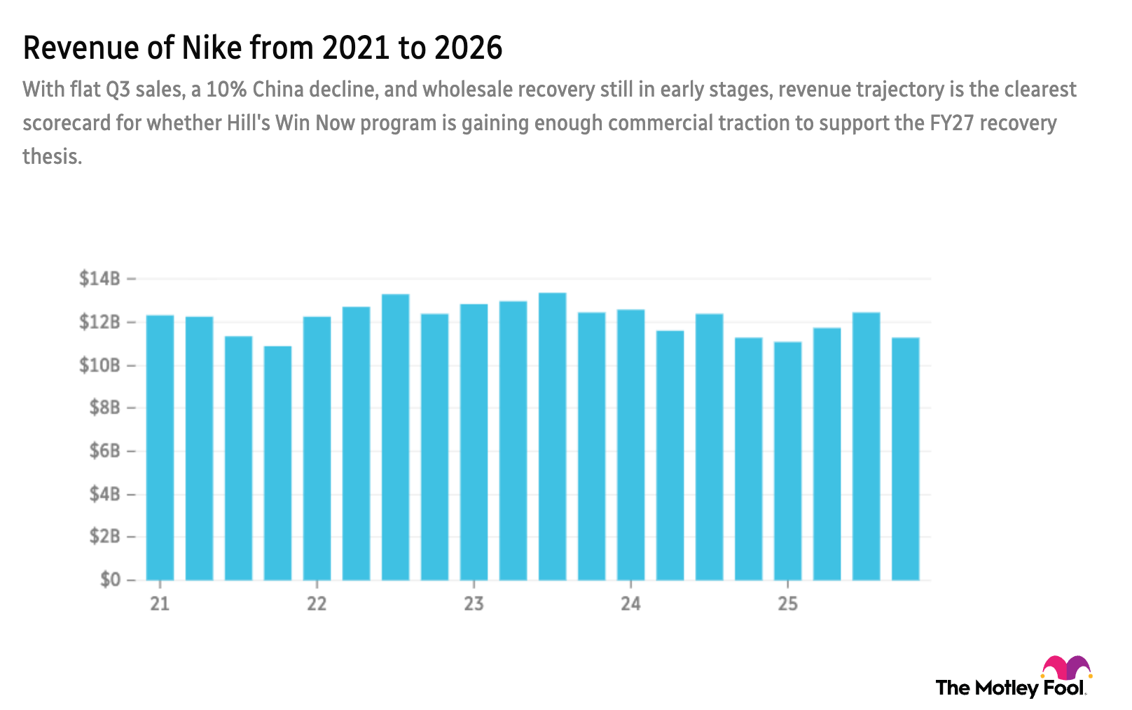 Прошел год с тех пор, как Эллиот Хилл вернулся к руководству Nike (NKE 13.61%), чтобы подстегнуть мирового лидера в производстве спортивной одежды. Пока что дыма много, а огня… ну, искры иногда проскальзывают. Как мы сообщали ранее, продажи в третьем квартале застряли на месте, несмотря на неплохие оптовые показатели, а прямые продажи (DTC) заметно упали. Если не учитывать колебания валютных курсов, картина становится еще печальнее. Однако программа «Win Now», которую внедрил Хилл, начинает приносить плоды.2