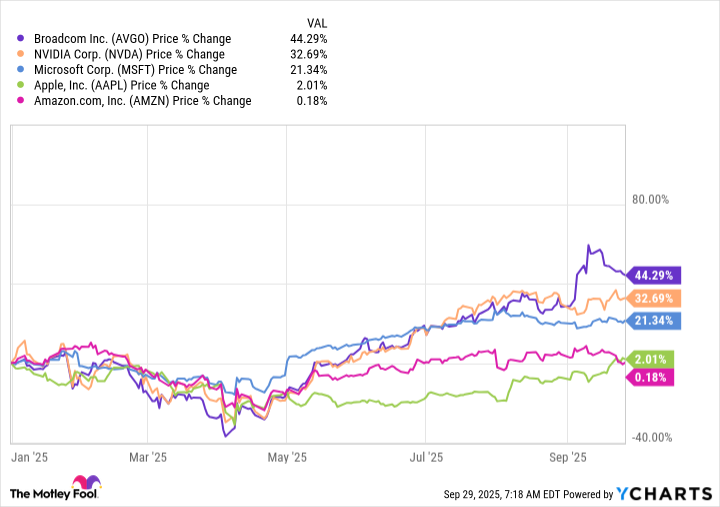 С&P 500 (^GSPC) показал рост на 13,2% с начала года, обогнав среднегодовой показатель в 10,5% с момента своего создания в 1957 году. Но если бы вы вложили деньги не в индекс, а в облигации ETF Вангарда (VUG), ваша прибыль составила бы 16,3%. Это не случайность — с момента запуска в 2004 году этот фонд превзошёл индекс каждый год. Причина проста: он делает ставку на тех, кто пишет законы рынка, особенно тех, кто стоит у истоков революции в искусственном интеллекте. Вот почему в 2026 году история повторится.