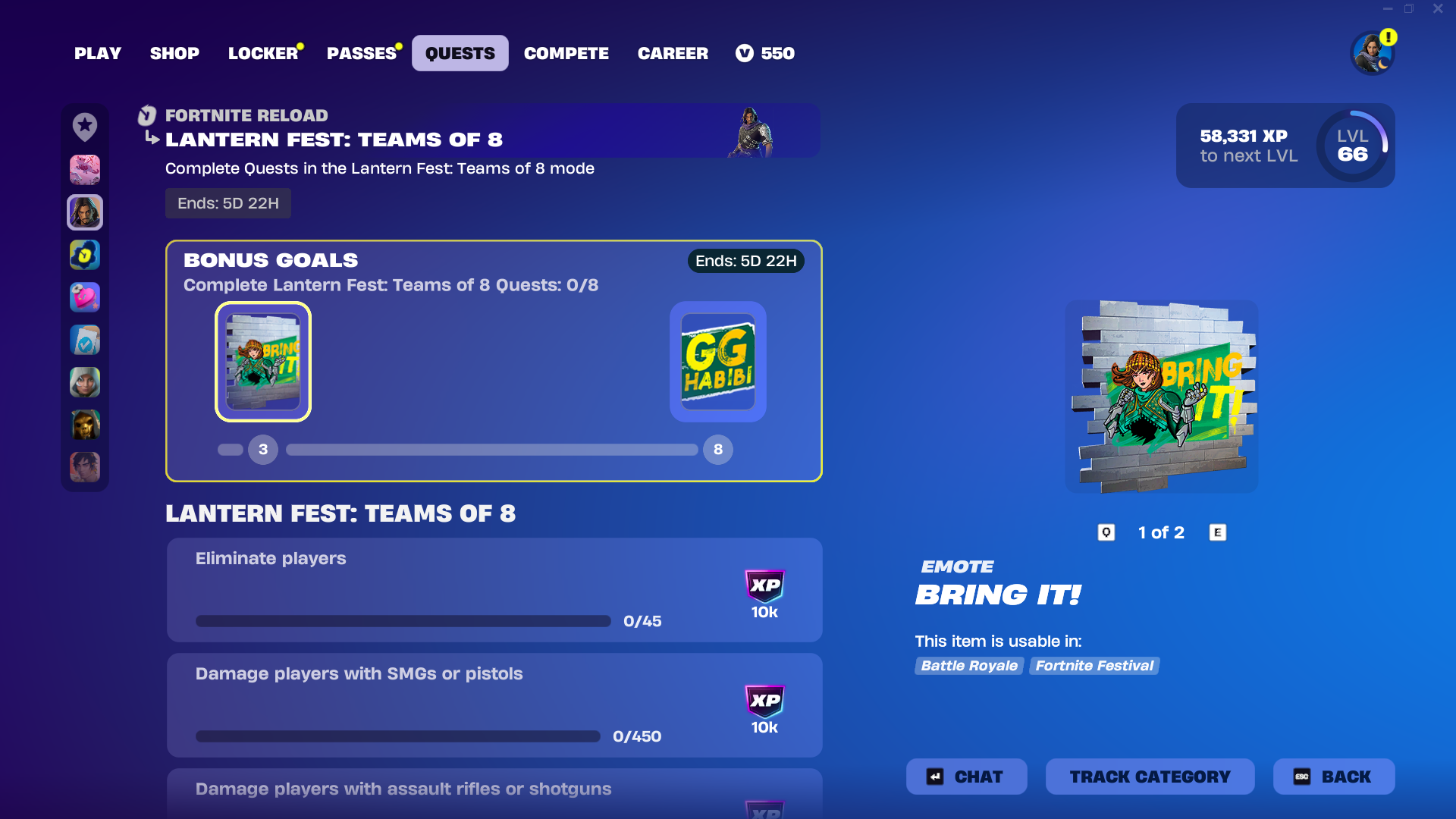 Игроки могут получить дополнительные награды, выполняя задания Фестиваля Фонарей! Выполните три задания, чтобы получить граффити ‘Bring It!’, и восемь, чтобы получить эмоцию ‘Love the Game’. Эти задания и их награды будут доступны до 25 февраля 9:00 по восточному времени.