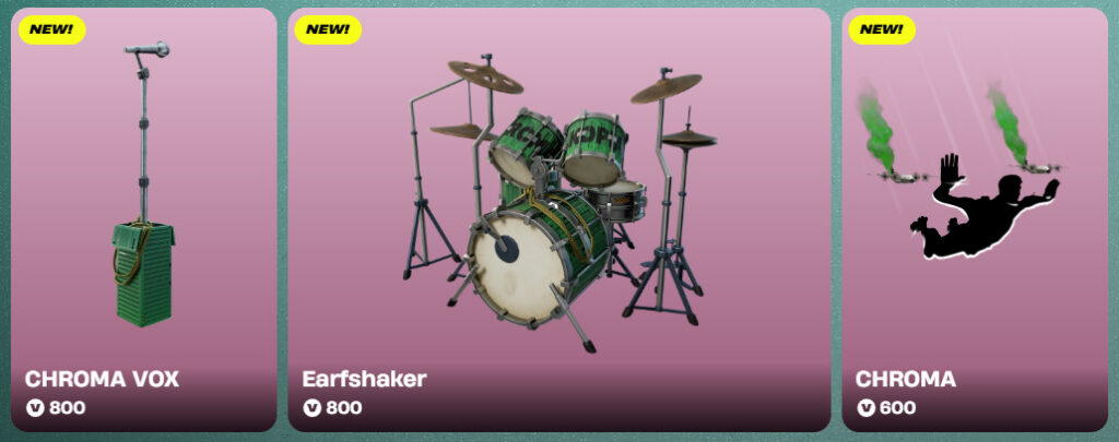 - Костюм Chromakopian с тремя альтернативными стилями и опцией маски — 1 500 V-Bucks