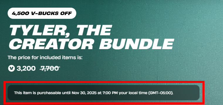 Партнерство началось в пятницу, 15 ноября, в 7 вечера по восточному времени. Однако Epic Games обычно не оставляет косметические предметы доступными надолго. Если вы хотите получить что-нибудь из коллекции Tyler, the Creator, вам нужно будет купить это до 30 ноября.