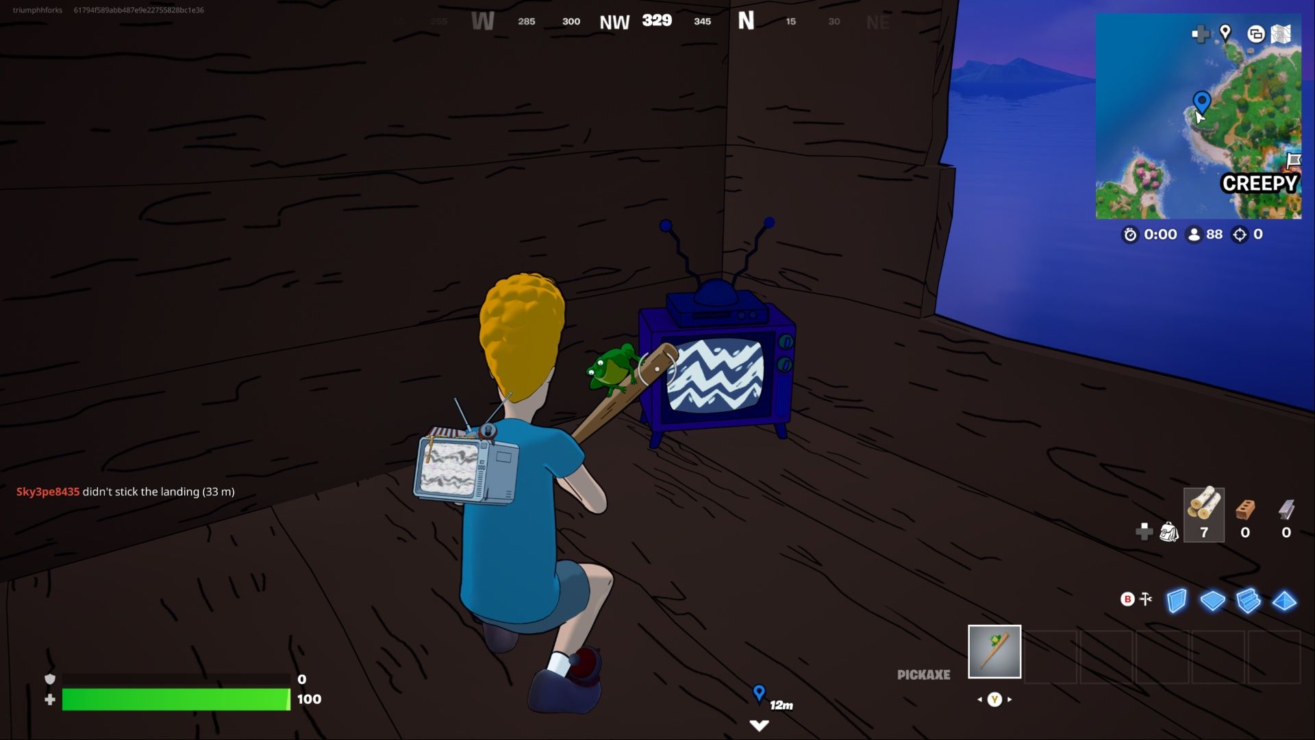 Игроки могут добраться до домика на дереве в Режиме строительства, построив пандус и пропрыгнув через дверной проём. Внутри находится старый телевизор, который обычно показывает помехи, но иногда отображает изображения – например, популярные Simpsons мемы и различные экраны ошибок.