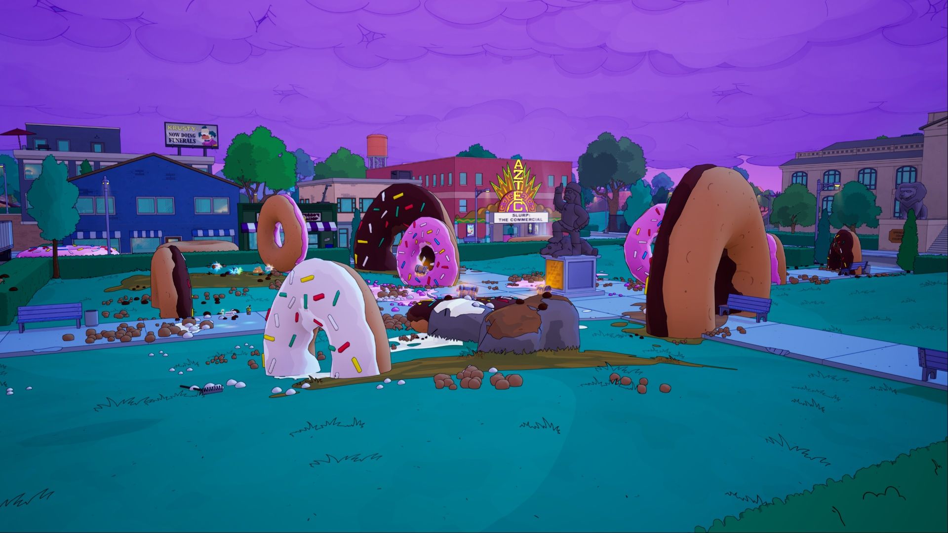 Чтобы поймать Бурю Пончиков, убедитесь, что вы находитесь поблизости на транспортном средстве, когда она должна появиться на карте. Борьба с клонами Гомера и выполнение связанных с этим заданий проста – просто атакуйте их, как и любого другого врага.