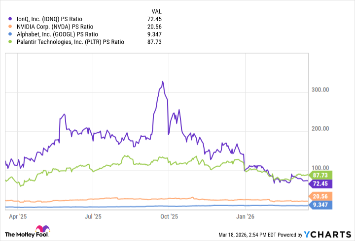 Учитывая это, я бы не советовал инвесторам покупать акции, которые постоянно размываются. Более того, оценочный профиль IonQ не имеет фундаментального смысла. Ее отношение цены к выручке (P/S) в 73 раза значительно выше, чем у Nvidia и Alphabet – двух самых прибыльных компаний в мире. IonQ торгуется примерно на том же уровне, что и Palantir Technologies – компания с устойчивой рекуррентной выручкой и высокой прибыльностью.