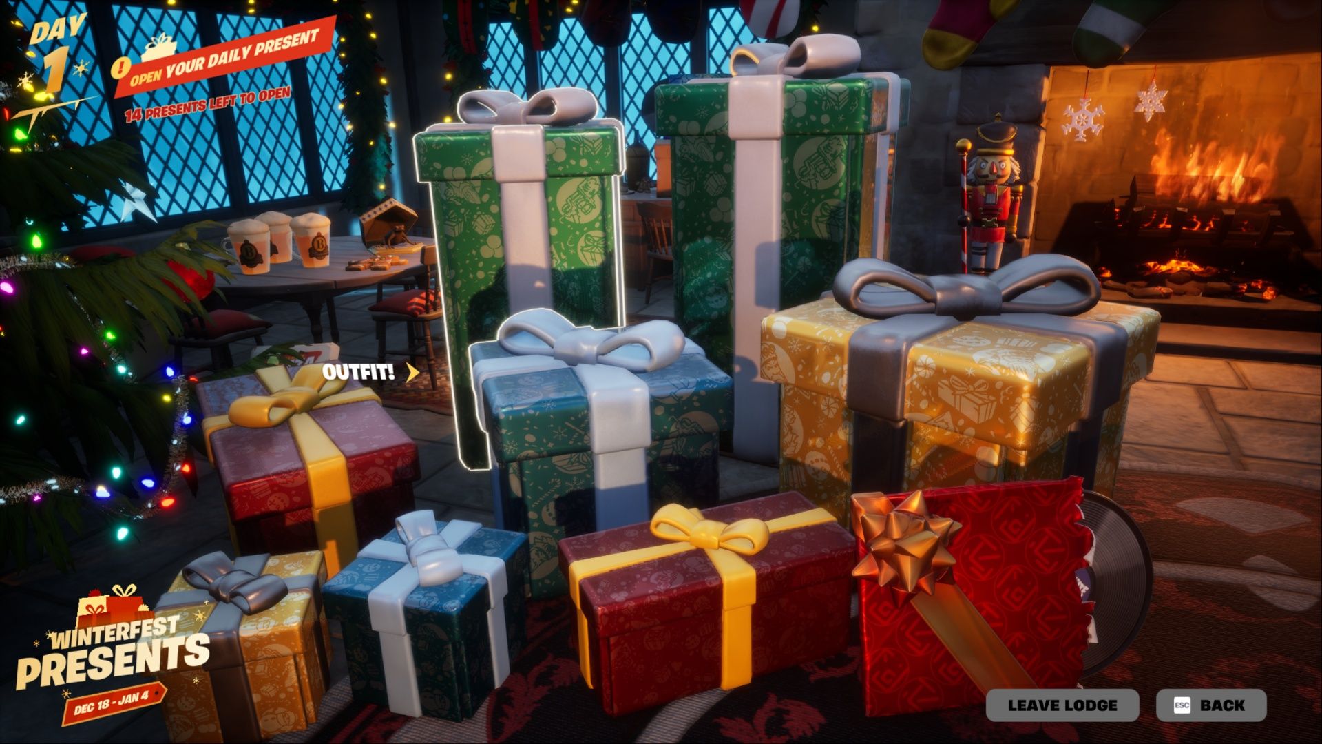 Во время зимнего фестиваля в Fortnite игроки могут найти 14 подарков, спрятанных по всей карте. Каждый подарок содержит сюрприз, а два из них содержат уникальный скин персонажа, что вызвало большой ажиотаж среди игроков.
