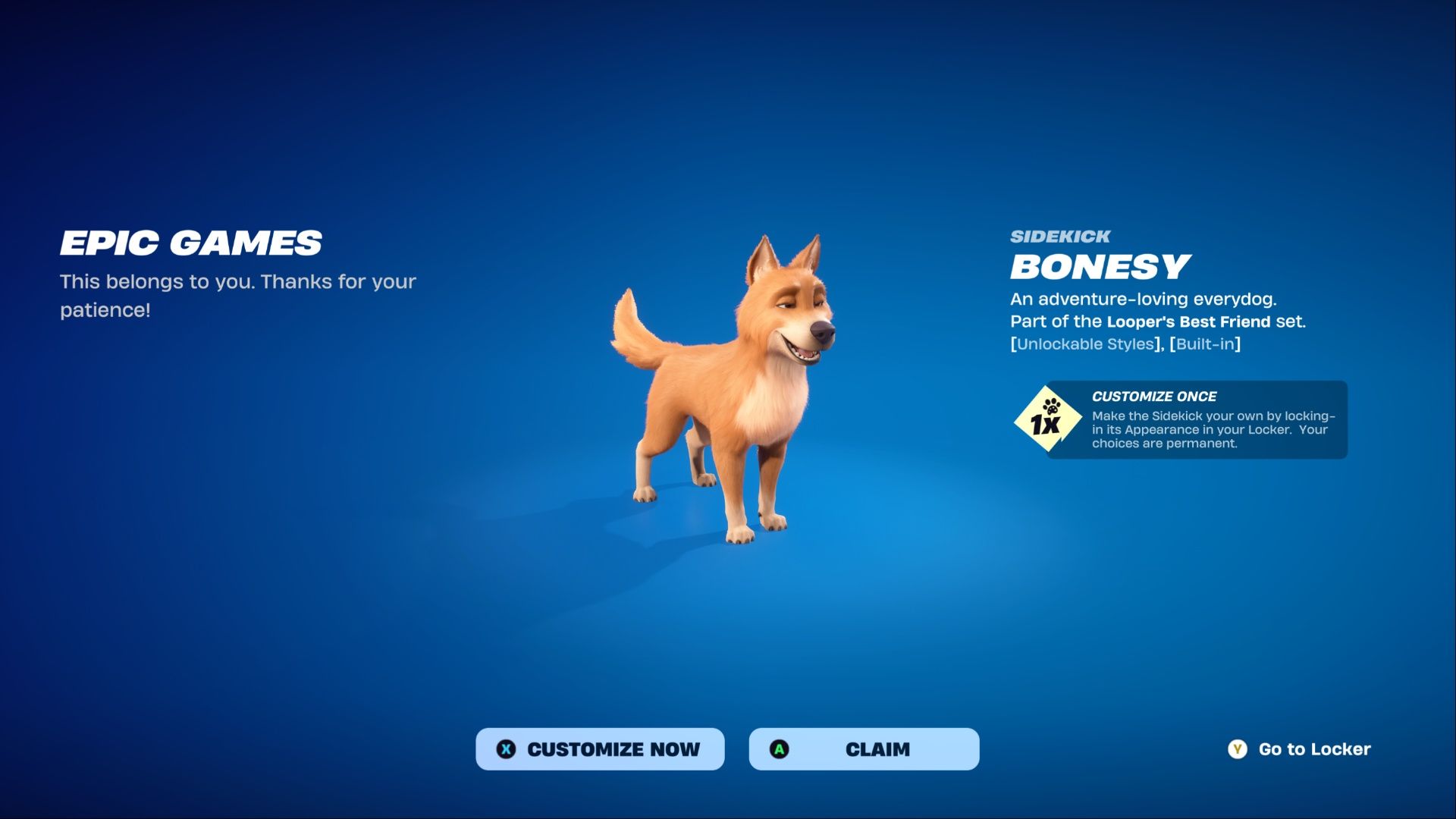 Когда некоторые игроки в Fortnite войдут в систему в следующий раз, они получат бесплатного компаньона Bonesy. Но важно знать, что только ограниченное количество игроков получит этот бонус.