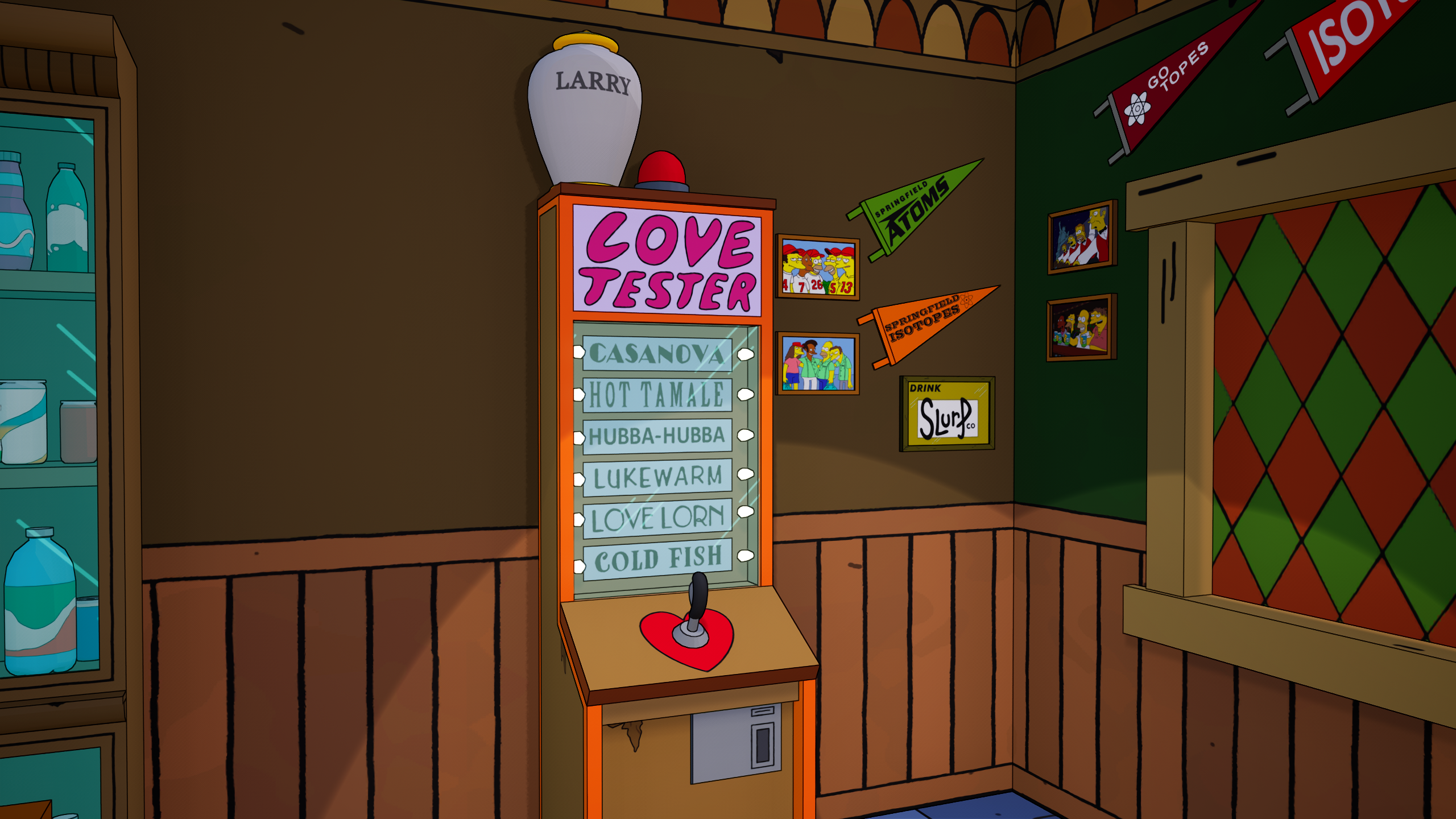 Площадь Спрингфилдского города является домом для таверны Мо, знаменитого бара, где Гомер тусуется со своими друзьями Ленни, Карлом, Мо и Барни. В то время как в таверне Мо обычно полно безумных вещей – таких как фейерверки и даже случайная панда – остров Спрингфилд, кажется, предлагает Мо более расслабленный опыт. Внутри игроки могут найти Тестер любви, который впервые появился в эпизоде 3 сезона ‘Пылающий Мо’. Вы также заметите обрамленные фотографии The Pin Pals, вокального квартета Гомера, и даже урну, содержащую прах Ларри Далримпля!