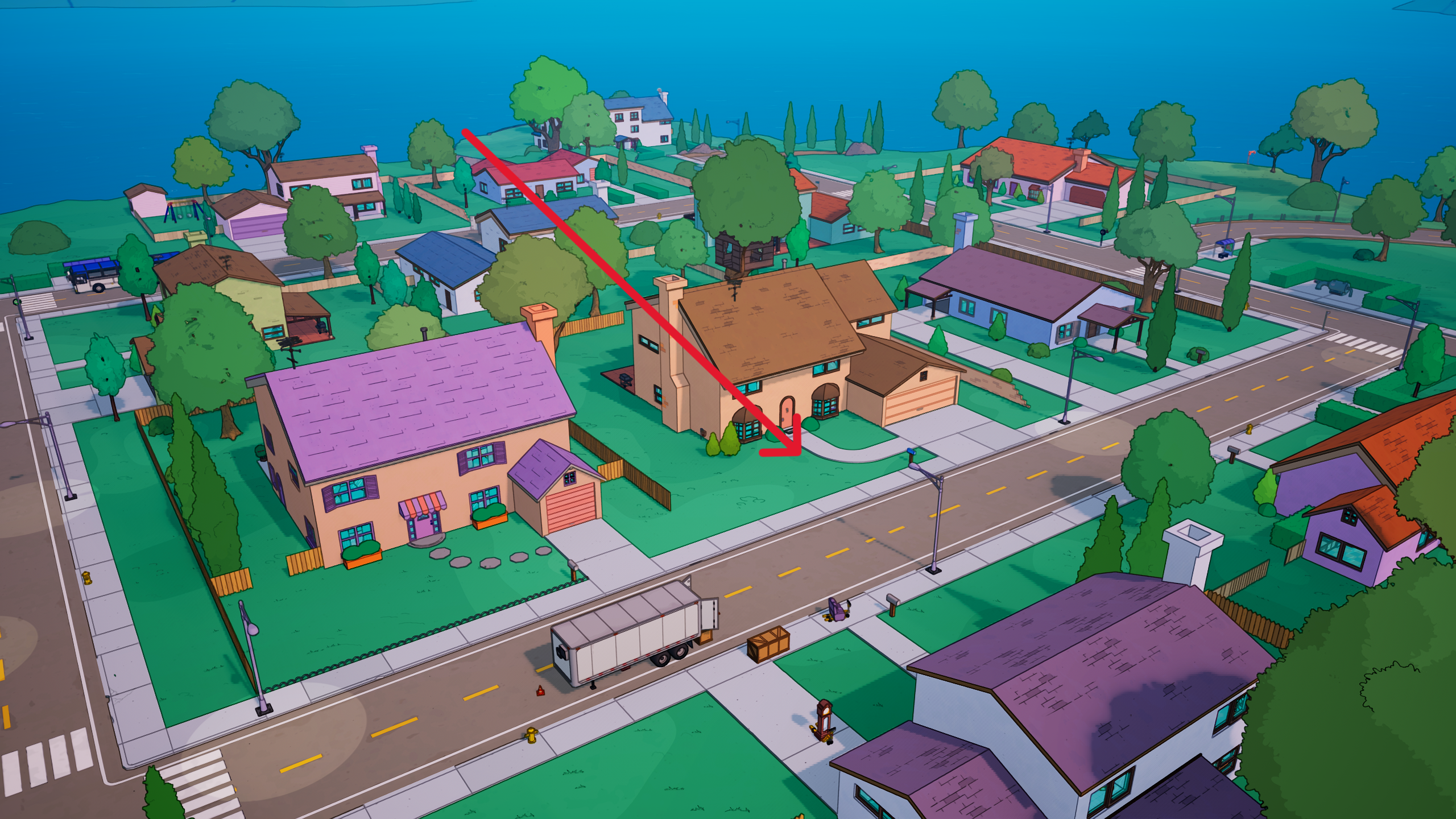 Как фанат Fortnite, я был очень рад найти Дом Симпсонов! Он находится прямо в середине Evergreen Terrace, который расположен на левой стороне карты. Вы не сможете его пропустить – это классический коричневый дом с коричневой крышей, прямо рядом с домом Неда Фландерса (с фиолетовой крышей!). Для квеста вам просто нужно подойти к входной двери – вам даже не нужно заходить внутрь. Хотя, если вы действительно войдете, там можно найти неплохие награды и даже встретить Мардж Симпсон! Также обратите внимание на машину Гомера, припаркованную поблизости – это забавная двухместная машина, которую можно использовать, чтобы покататься по Спрингфилду, найти награды или просто сбежать!