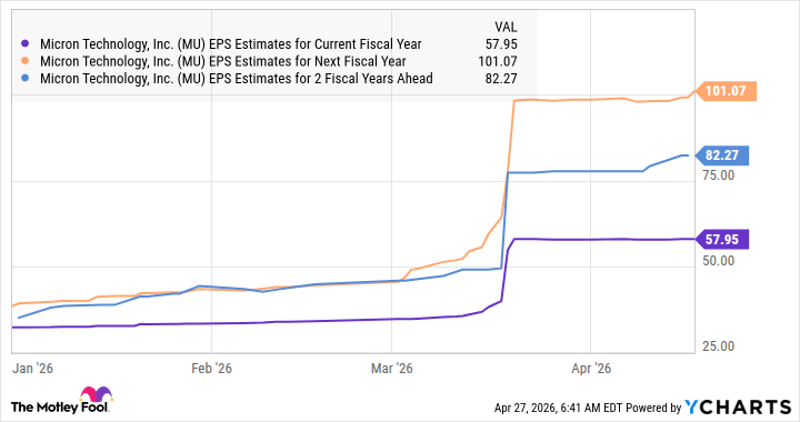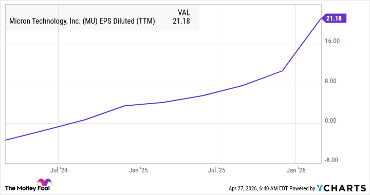 Предположим, что прибыль Микрона будет расти на 15% в год в 2029 и 2030 годах. Тогда к концу десятилетия она может достичь 108.80 доллара на акцию. Если акции будут торговаться с коэффициентом 30 к прибыли, что немного ниже, чем у Nasdaq-100, то к 2030 году они могут стоить 3264 доллара. Звучит неплохо, да? Но это всего лишь предположения. Я видел, как такие сценарии рушились. Поэтому я покупаю акции только тогда, когда вижу реальные цифры.