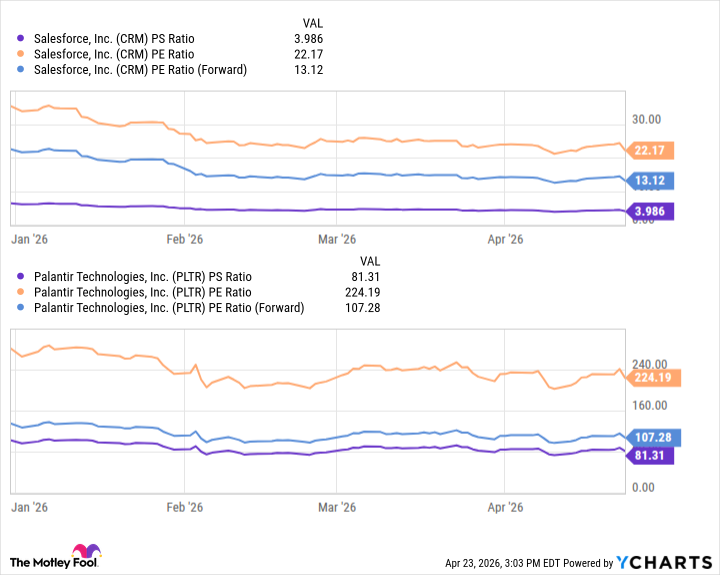 Общее между Palantir и Salesforce очевидно: обе компании продают программное обеспечение по подписке и стремятся интегрировать большие языковые модели в свои экосистемы. Разница – в применении. Преимущество Palantir – в глубине, а Salesforce – в простоте внедрения. Иными словами, одна платформа кажется кастомным суперкомпьютером, предназначенным для решения сложных задач, а другая – незаменимой операционной системой для повседневных операций с клиентами.