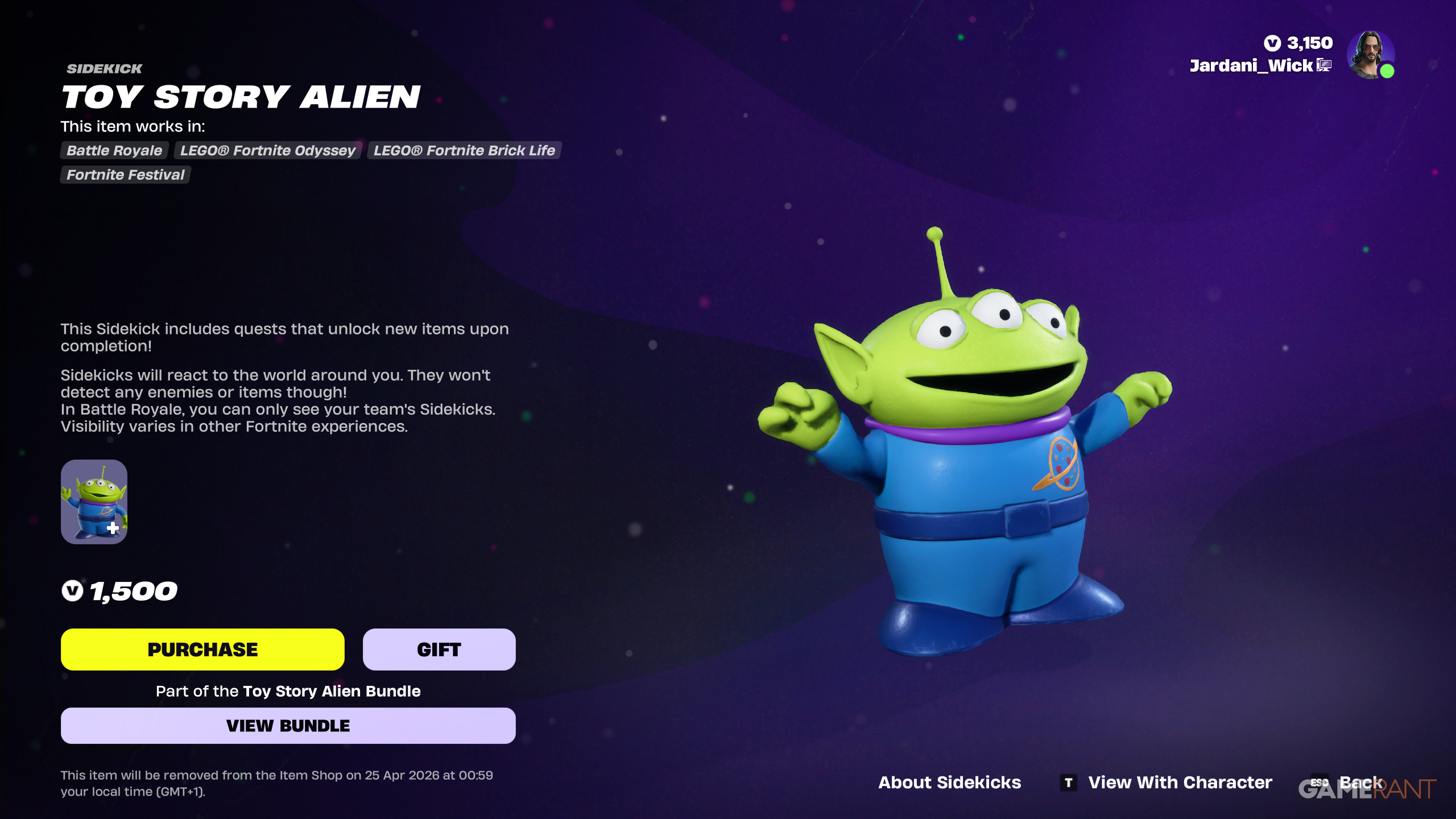 - Игрушку пришелец из Toy Story можно приобрести за 1 500 V-Bucks.